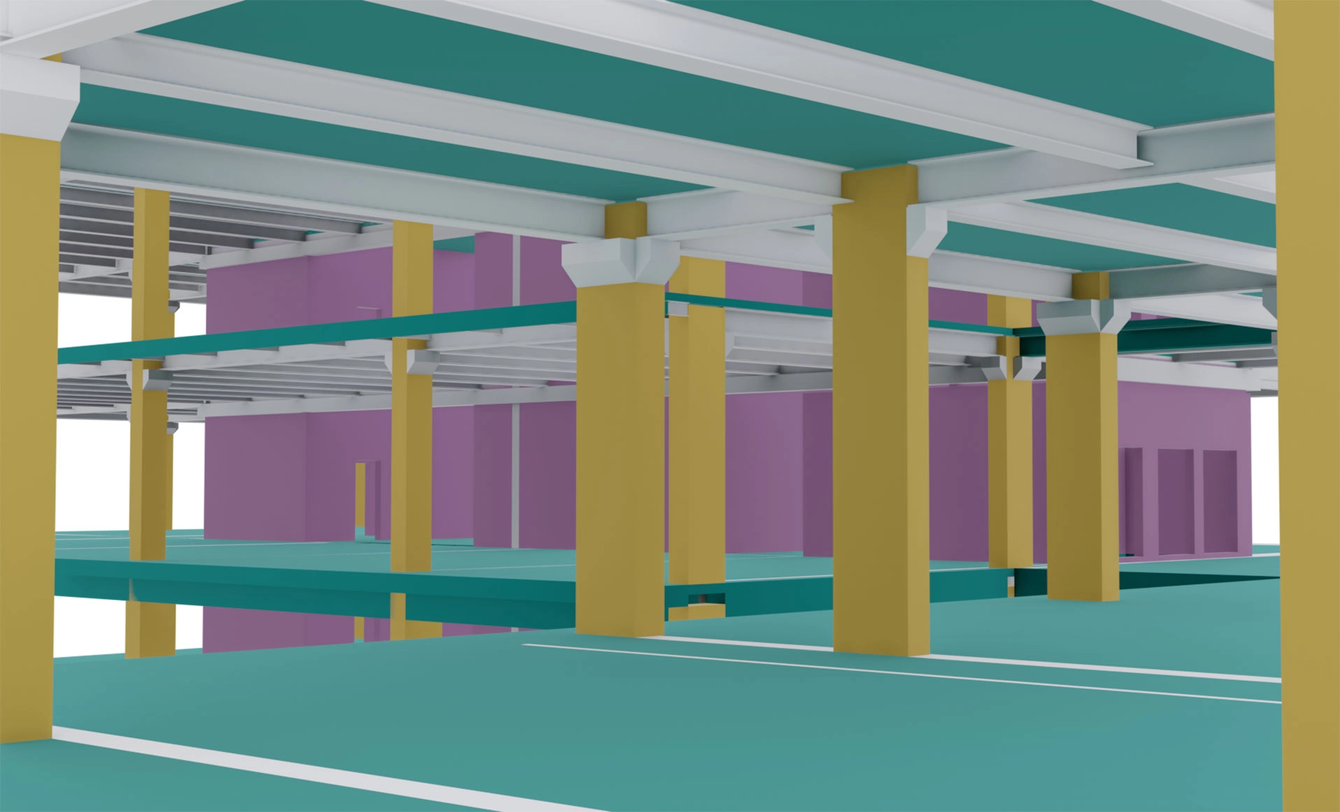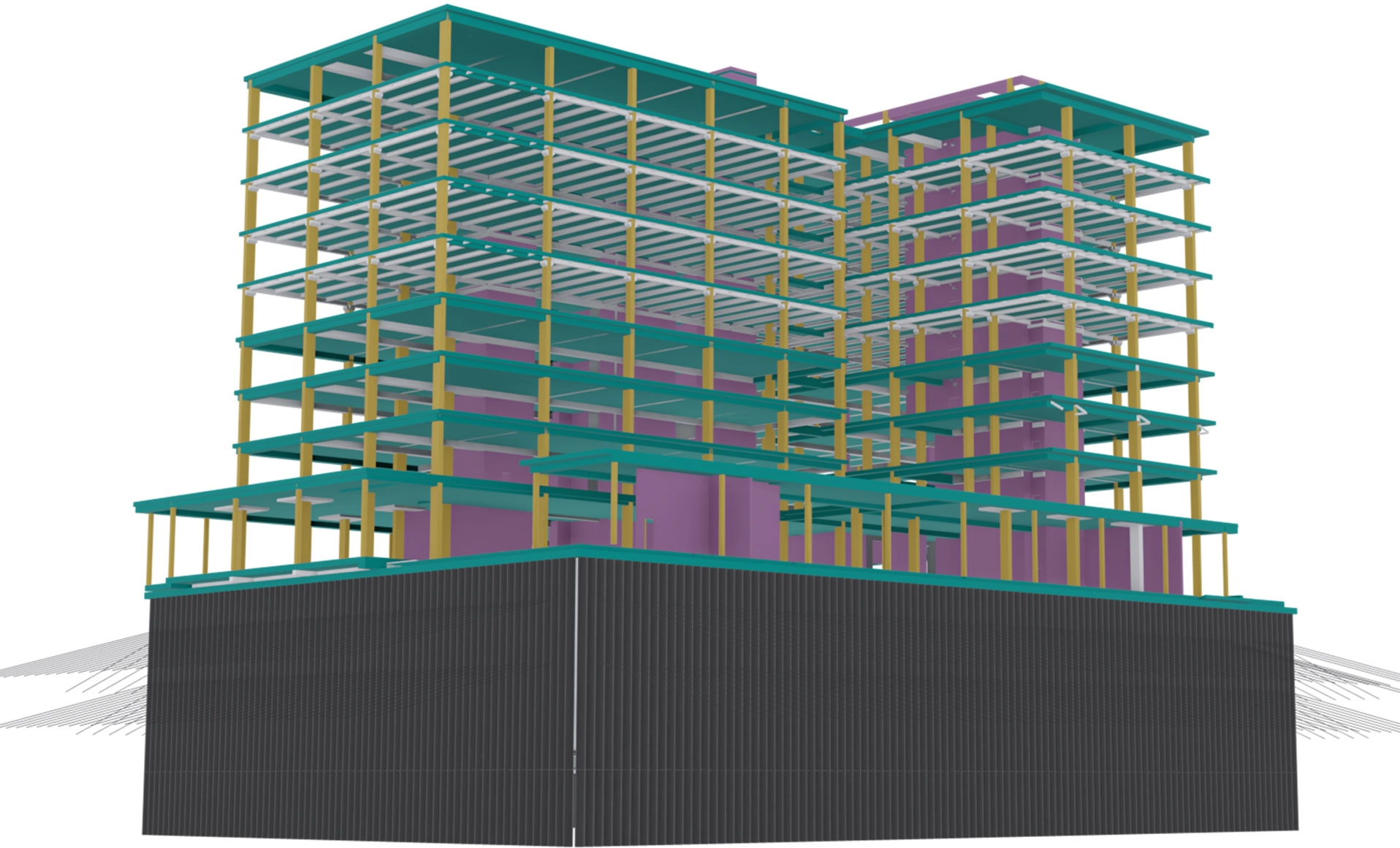 This modern commercial building features three levels of underground parking and nine above-ground floors, maximizing space use in an urban environment. The structure consists of a reinforced concrete frame with two shear cores for stability under horizontal and vertical loads. At the client’s request, additional floors were successfully added using steel floor beams, showcasing the flexibility and adaptability of the design. The structural solutions ensure efficient land use, as well as safety and durability in operation.