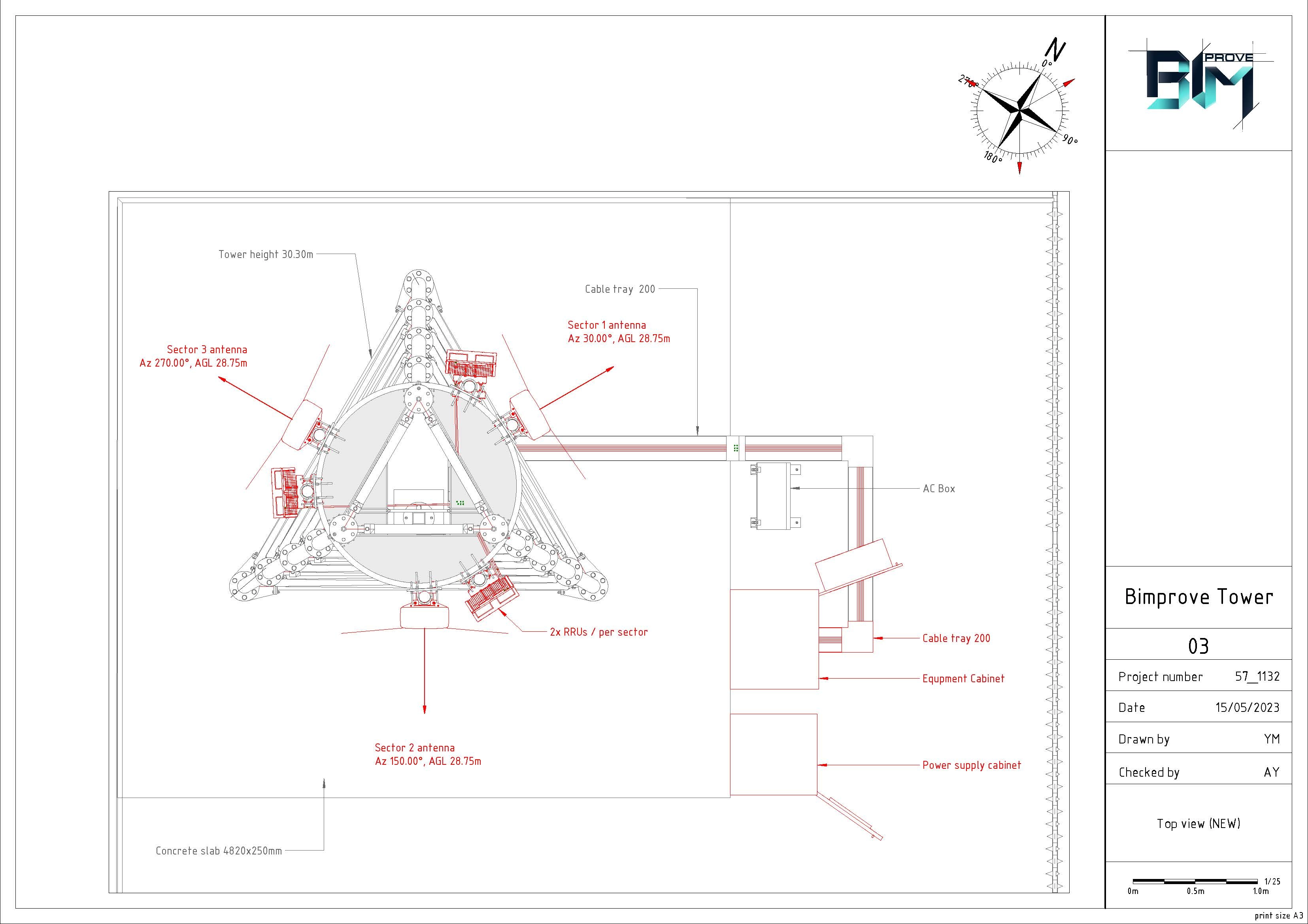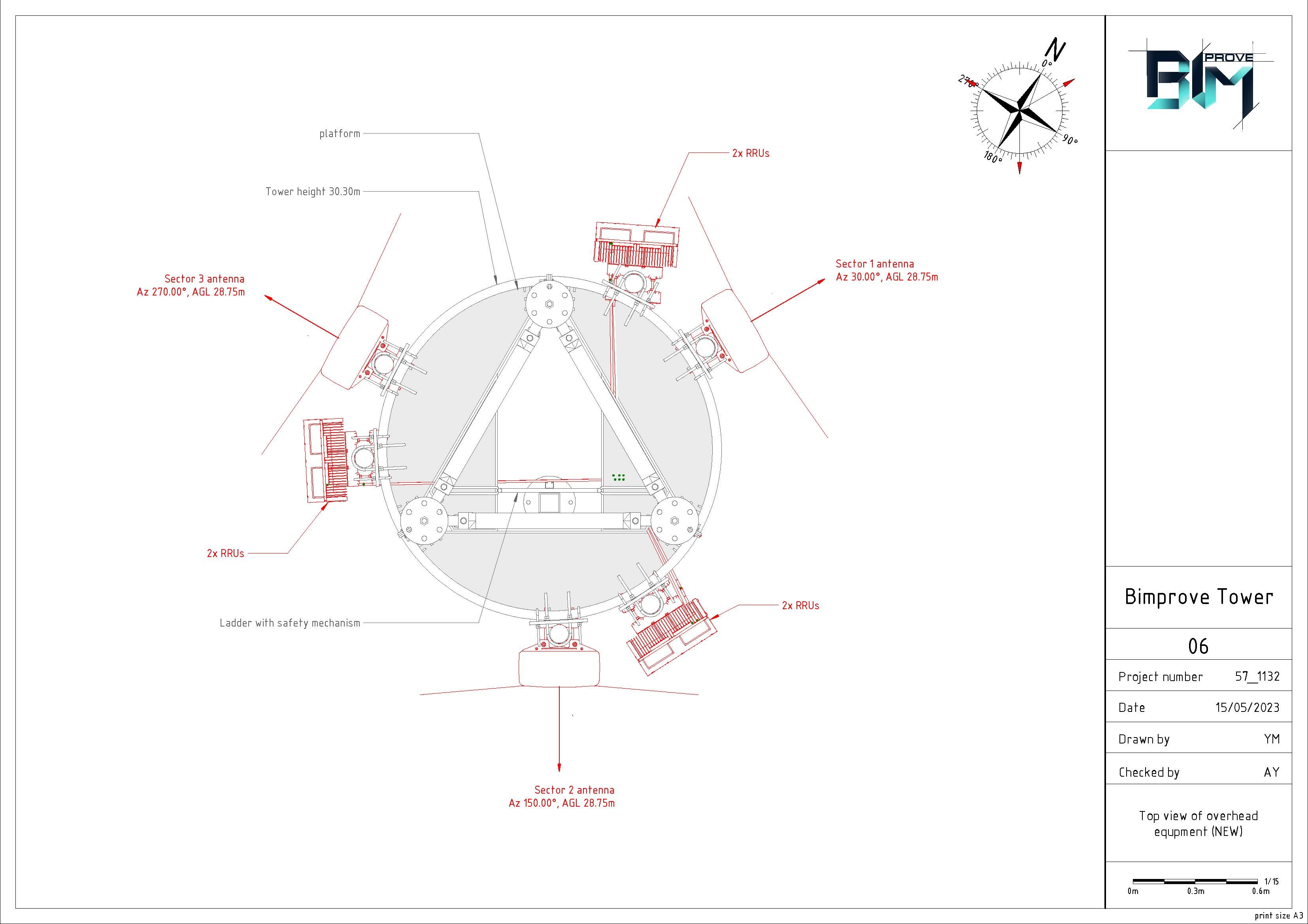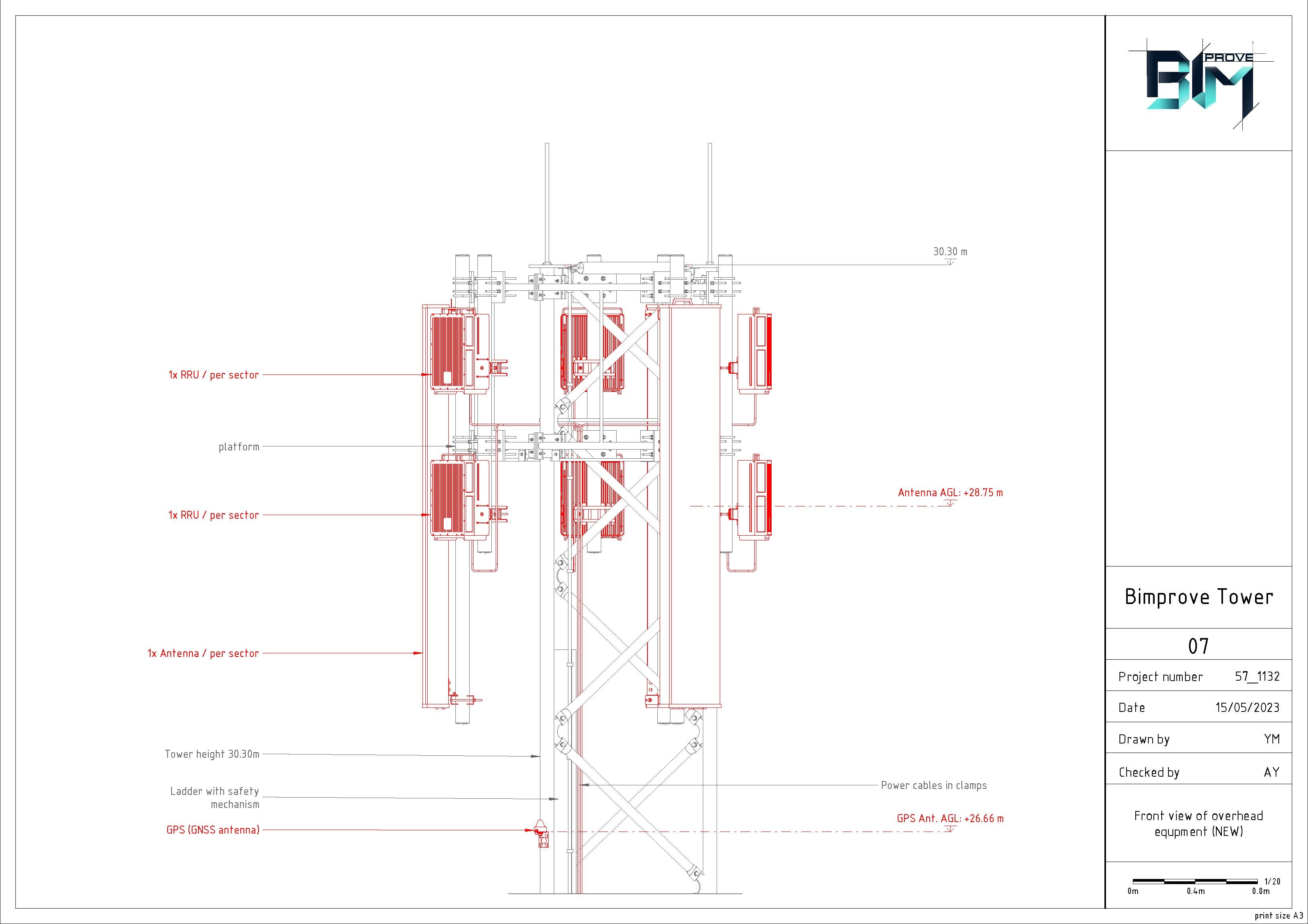 Modeling of the tower with equipment supports at the top. Analytical model. Equipment. Cable trays. Safety objects. The area around the tower