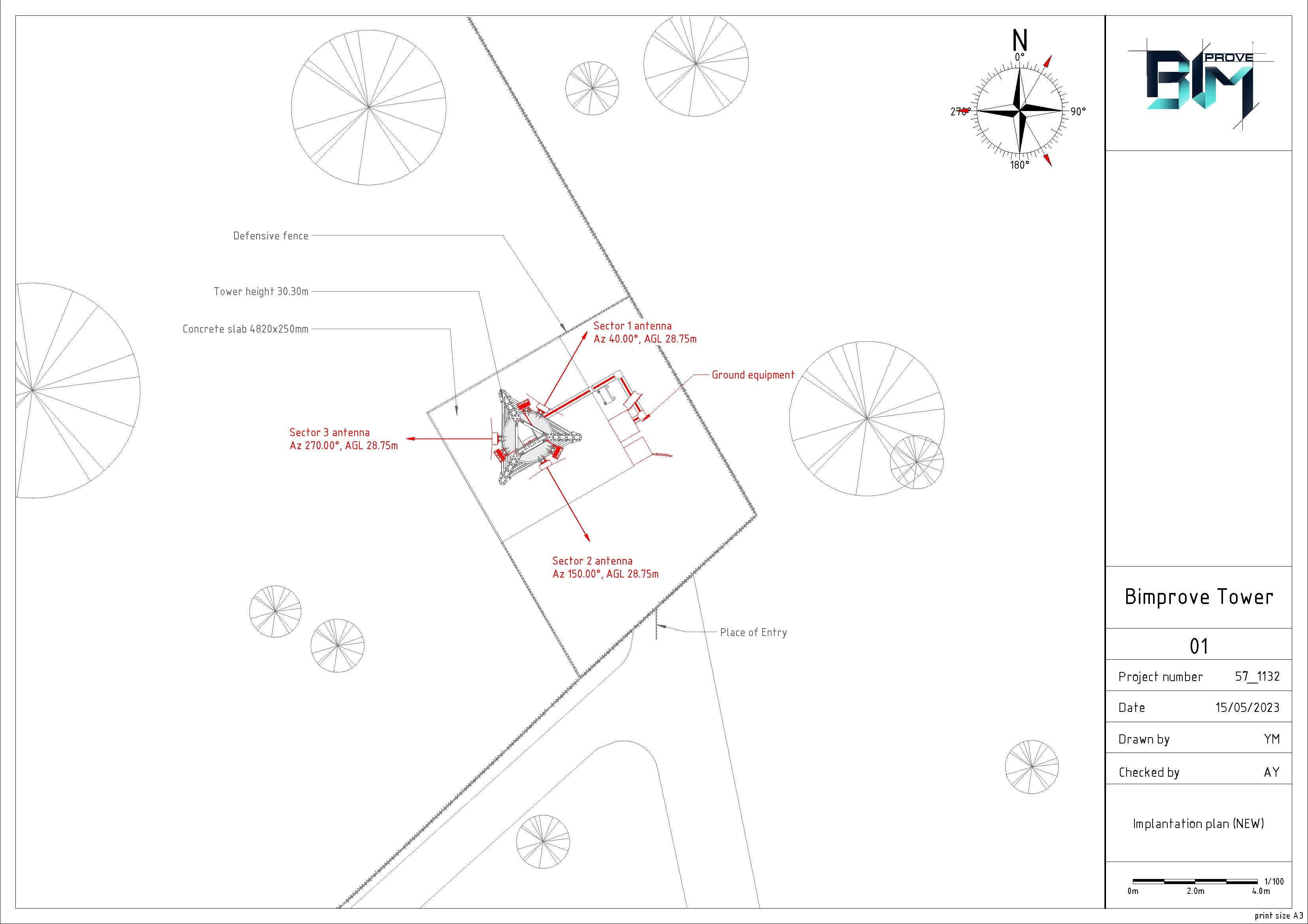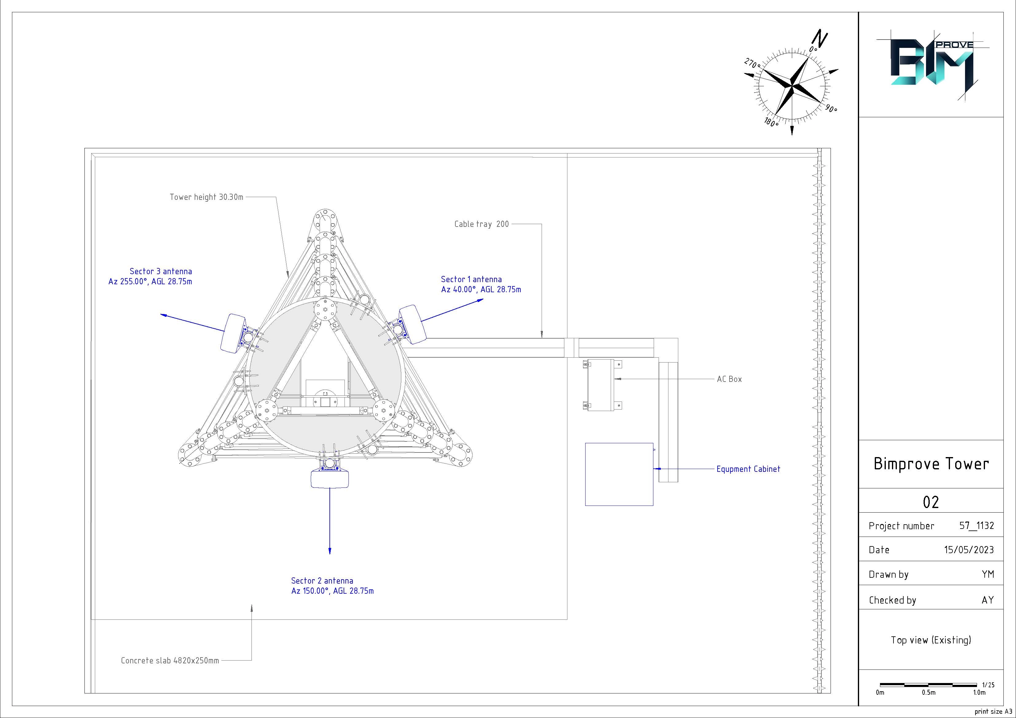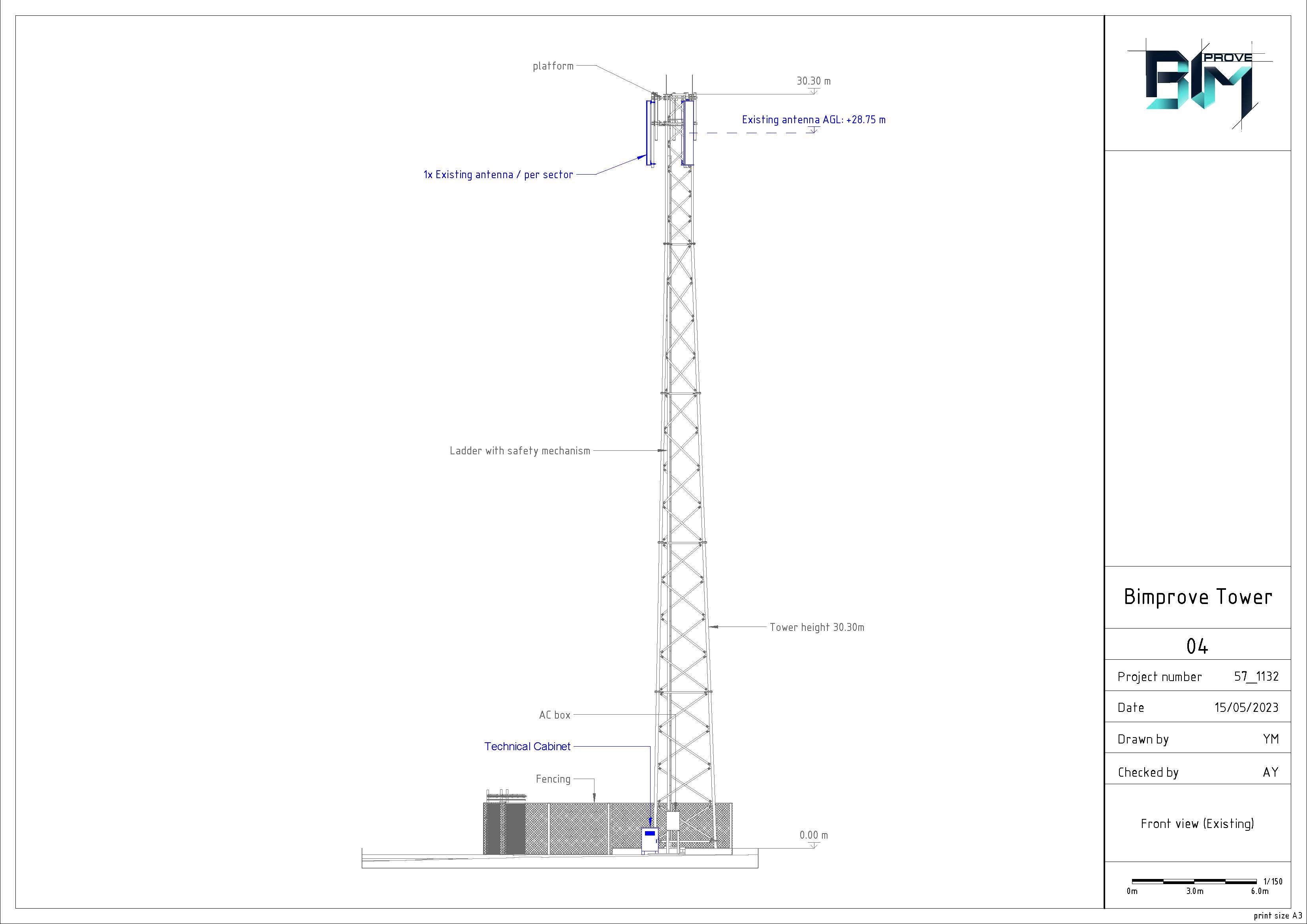 Modeling of the tower with equipment supports at the top. Analytical model. Equipment. Cable trays. Safety objects. The area around the tower